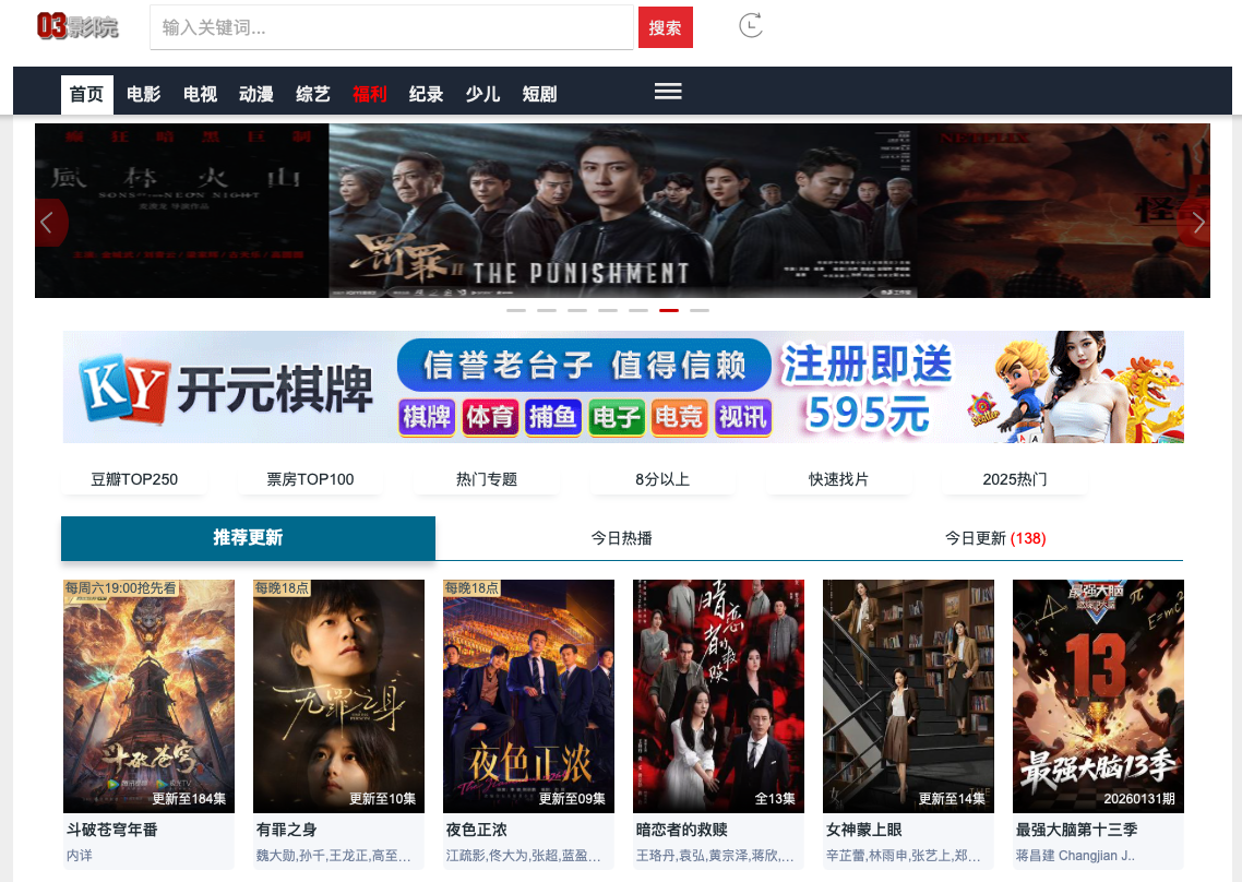 03影院是提供最新最热的电影、电视剧、综艺、动漫以及短剧免费在线观看,全部为高清秒播、无广告的视频和MP4资源下载,并有欧美奈飞Netflix、迪斯尼、TVB港台、日韩以及少儿频道等等热门专题。找电影更快,看电影更快。
